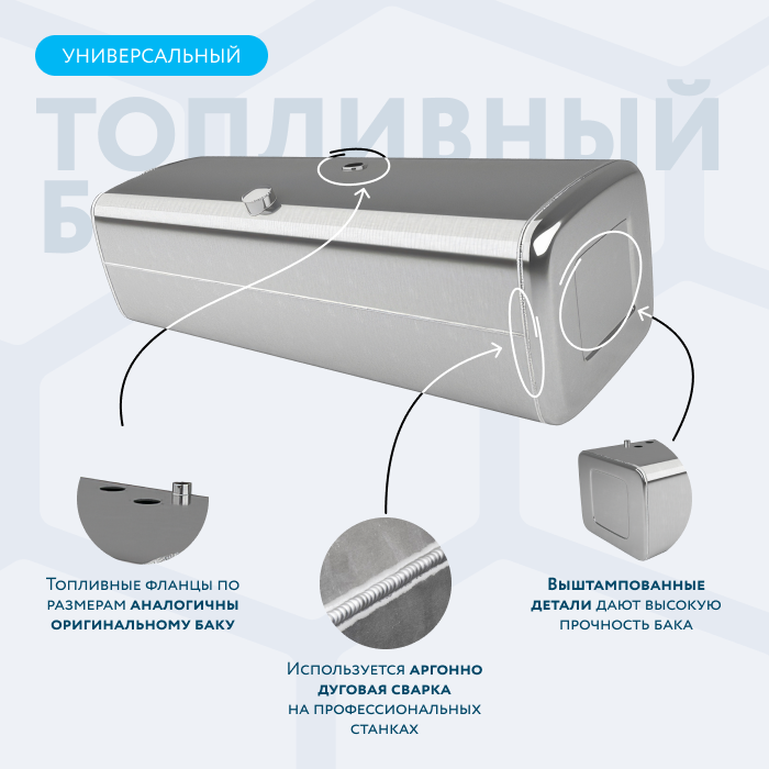Все баки этого типа изготовлены из сортового алюминия увеличенной толщины 2.5 мм. Баки прошли сертификационные испытания. Продукция имеет паспорт и декларацию таможенного союза. Гарантия 3 года.